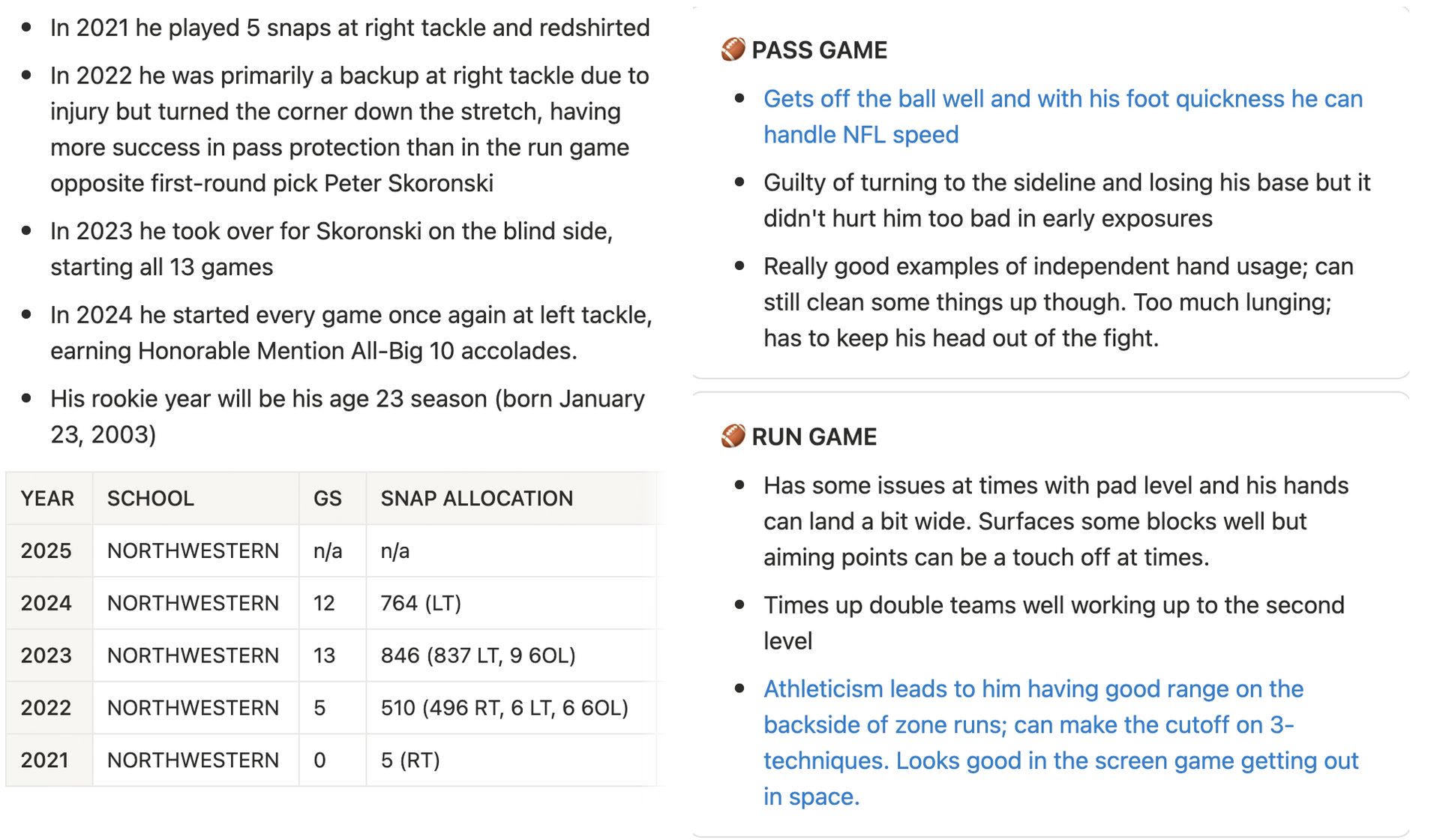 I am already thinking about what the Eagles might do next April, and what the Offensive Tackle Of The The Future crop might look like. Well, what about, I dunno, Caleb Tiernan from Northwestern? Fran has me covered. Now, I know everything about him. OK, not everything, but a whole lot!
